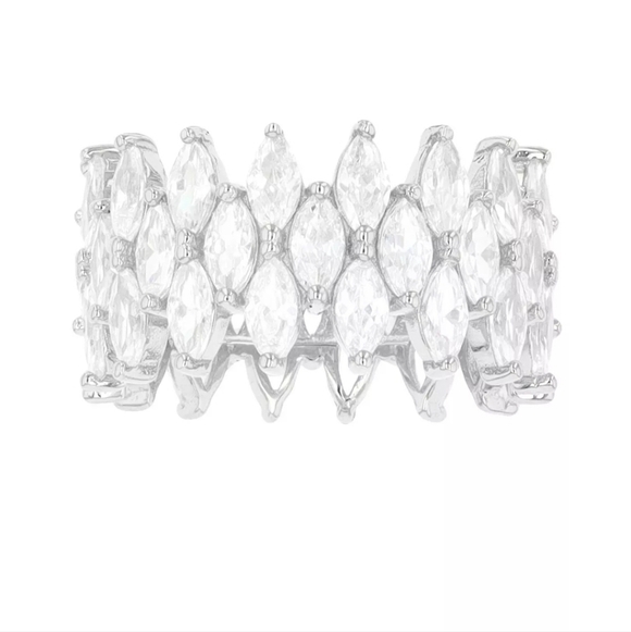Bold in design, this ring features a triple row of marquise cut sparkling white cubic zirconia.