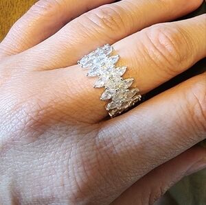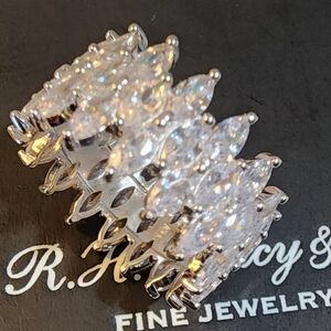 Cubic Zirconia 3-Row Marquise Cut silver Ring size 7