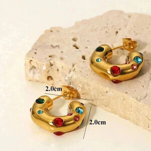 Cubic Zirconia Decor Cuff Hoop Earrings