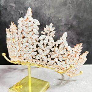 Cubic Zirconia, Diamond Zirconia Crown, Rose Gold Crystal Crown, Princess Crown