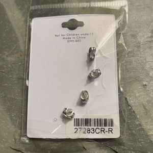 -set of 4 individual earrings set in silver tone metal—star, moon, dangly star and curved bar