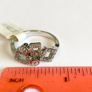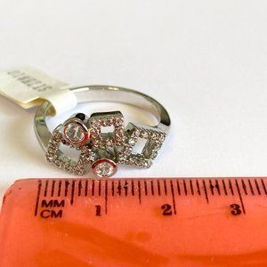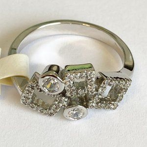 Cubic Zirconia Geometric Anniversary Ring Size 10 Silver Rhodium Plated BezelSet