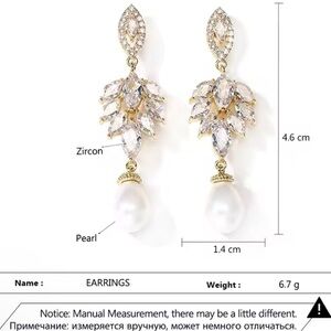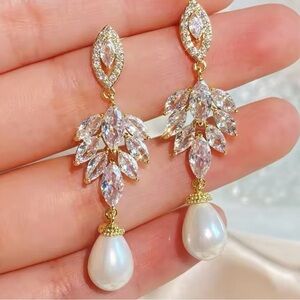 Cubic Zirconia Leaf Dangle Earrings Bride Earrings
