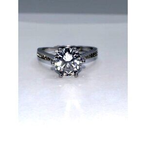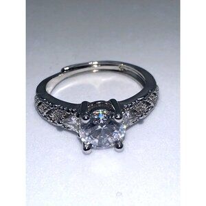 Cubic Zirconia & Moissanite Silver Tone Adjustable Ring