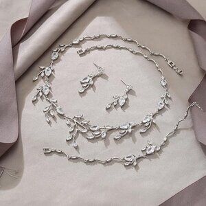 Cubic Zirconia Pear-Shaped Birthstone Leaf Necklace Earrings Set for Prom