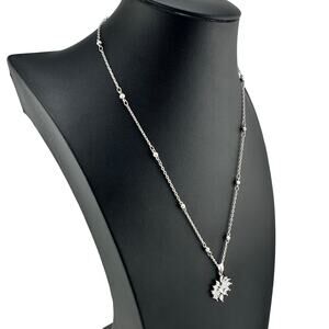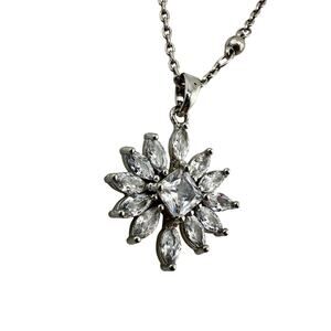 Cubic Zirconia Princess Marquise Flower Prong Set Silver Tone 18" Necklace