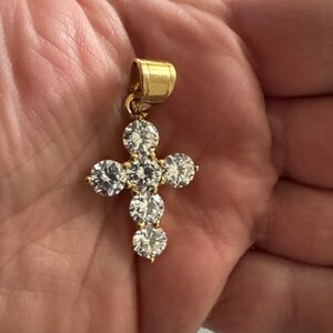 Cubic Zirconia Stainless Steel Cross Pendant Gift Trendy 24” Necklace Gold Tone
