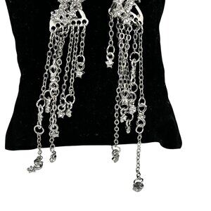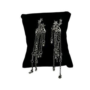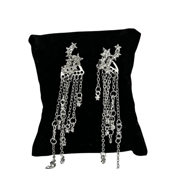 Cubic Zirconia Star Tassel Dangle Drop Earrings Silver-Tone Long Chain Design Post Closure
