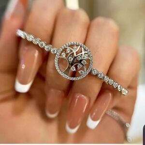 Cubic Zirconia Tree Of Life Adjustable Bolo Bracelet In Silver Plate NEW
