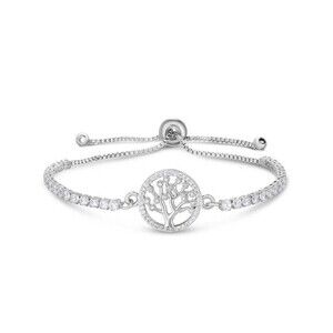 Cubic Zirconia Tree Of Life Adjustable Bolo Bracelet in Fine Silver Plate $75