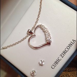 Cubic zirconia heart necklace & earrings