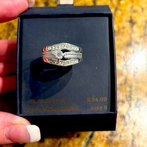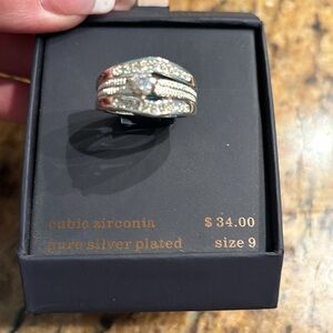 Women’s cubics, zirconia, pure silver plated size 9 ring brand new with box