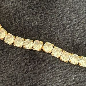 Brand new cubic zirconia tennis necklace! This is a classic take on the traditional tennis bracelet. So pretty. High quality clear cubic zirconia stones set in a gold tone setting.