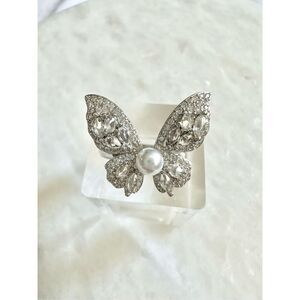 Cubic zirconia with pearl detail adjustable butterfly ringj