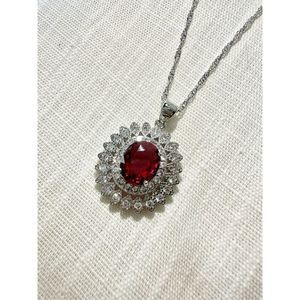 Cubic Zirconia Ruby pink color pendant necklace