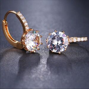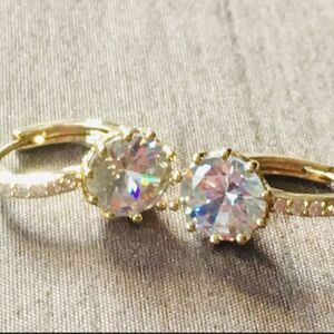 Cubic Zirconia 18k Gold Plated Stud Earrings NWT are brand new. Earrings are platinum plated, and the CZ (cubic zirconia) have great sparkle & fire. Please see photos for measurements (& compared to pencil eraser). Earrings are silver (.925 stamp) with 18k gold plating. Gorgeous showstoppers!!