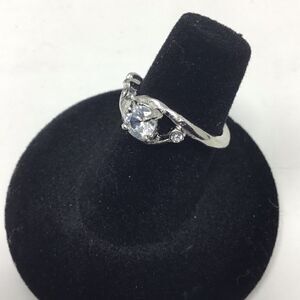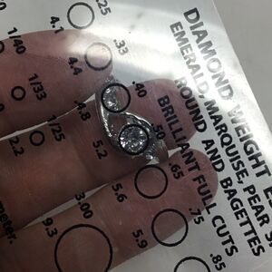 A perfectly round main stone with 4 prong setting. 3 small stones to one side of curve and one on other side