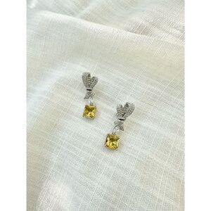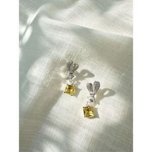 Cubic zirconia bow canary dangle earrings