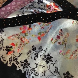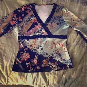 Beautiful silk-like material with jeweled collar and waist. Three-quarter sleeves.