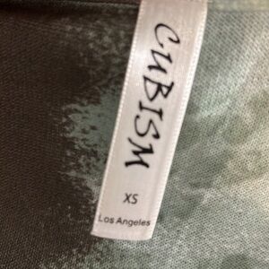 Cubism Top Relaxed V-neck Curved Hem Olive Green Sleeves & sides are mesh 3/4 Sleeves Size XS Slight hi-lo NWT New with tags Chest measures 18” across front laid flat Length is 26” front 28” back B13