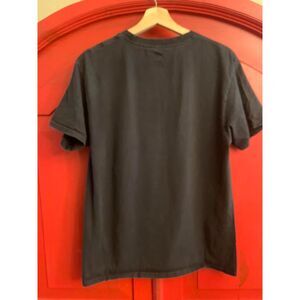 This is super cute. The tee has light fading but no spots or holes. It is on a Hanes Tee shirt The decal is factory distressed. The bust laid flat pit to pit is 20". The total length is 26".------------------------------------------------------36