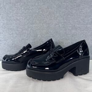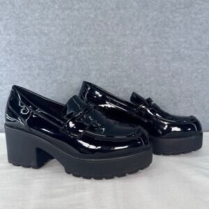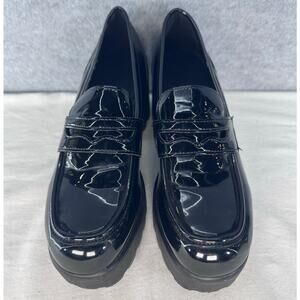 Cuccoo Women's sz 38 (US 7) Platform Patent Black Chunky Heel Loafer BusChic