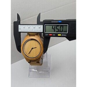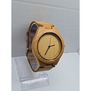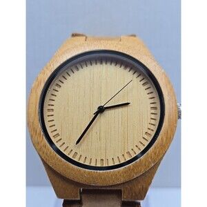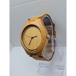 Cucol Bamboo Wooden Watch Brown Leather Strap Minimalist Quartz 45mm New Battery