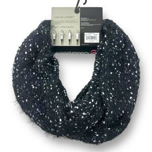 Cuddl Duds 4-Way Knit Infinity Winter Scarf Black White Fuzzy Soft Yarn New