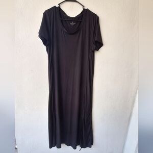 Cuddl Duds Black Double front opening Short Sleeve Womens Midi Dress Size L