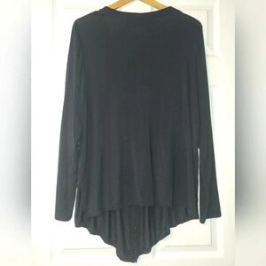 Pre-owned and in great condition with gentle wear. Fabric has a very soft feel. Great basic layering piece. Cardigan is a bold black, not faded.