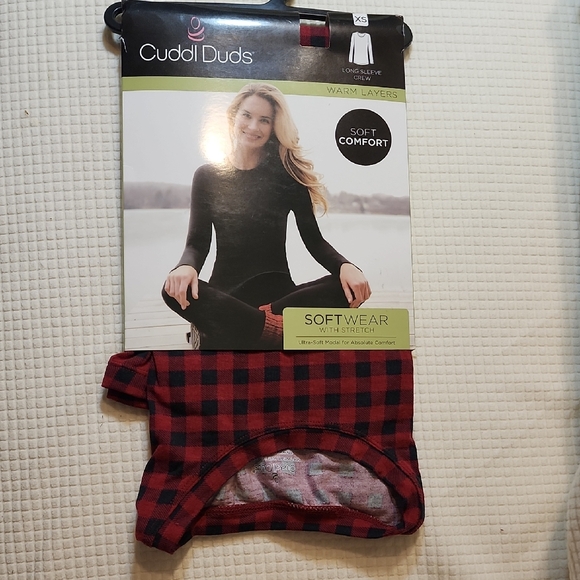 Cuddl Duds Black and Red Plaid Thermal Top Xs