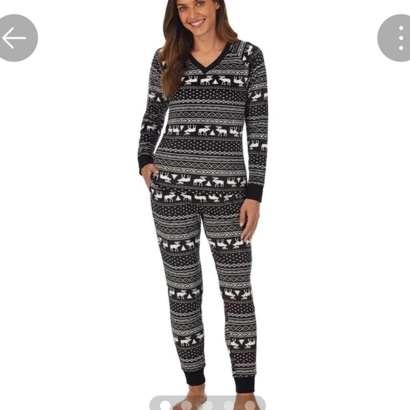Soft velour pajama set with a moose Fair Isle design. Ideal for cozy nights. Gently worn only once or twice. Excellent condition!