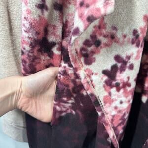 Cuddl Duds Cardigan Women M Cream Purple Floral Longline Cozy Plush Hooded Coat