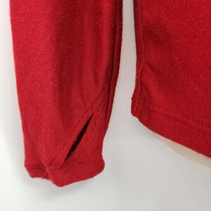 Red solid pullover top. Sleeves have thumb holes.