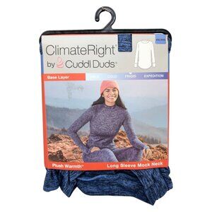 Cuddl Duds ClimateRight Base Layer Top Womens Blue Plush Warmth Mock Neck Sz XXL