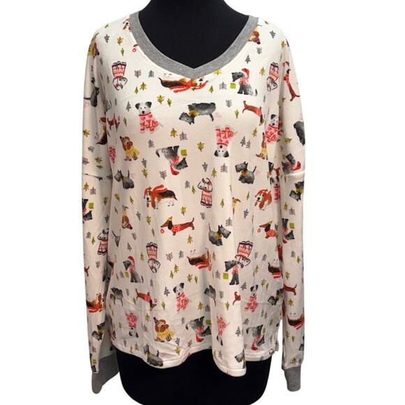 Cuddl Duds Dog Print Fleece Lounge Top XL Cozy Sleep Shirt