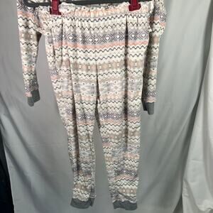 Cuddl Duds Fair Isle Pajama Set Long Sleeve Pants PS Pink Gray Cozy Fleece
