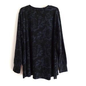Cuddl Duds Fleece Pullover Lounge Top Women's Plus Size 2X Blue Black Thumbholes
