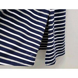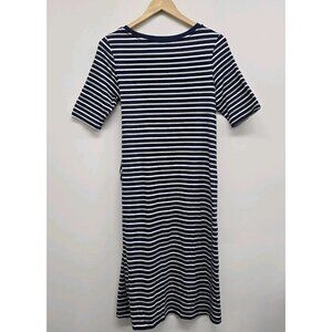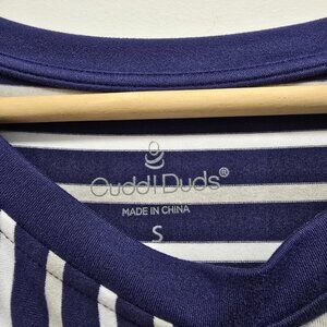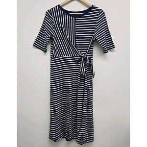 Cuddl Duds Flexwear Wrap Dress Sz Small Tie Front Striped Blue Gray White Casual