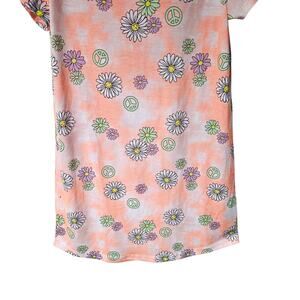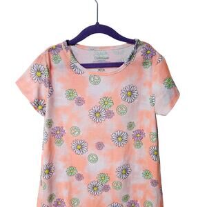Cuddl Duds Girls M Short Sleeve Tee Shirt Dress Peach Daisy Print Peace Signs
