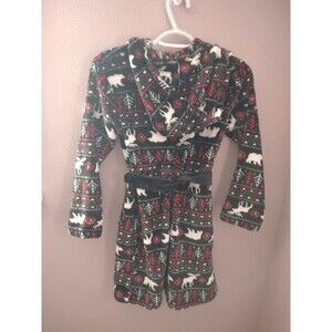 Cuddl Duds Kid's Moose Polar Bear Xmas Hooded Belted Robe Loungewear Size M 8/10