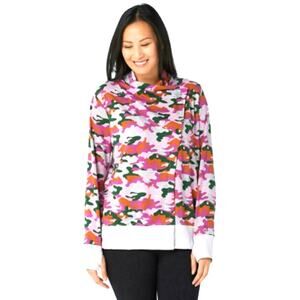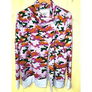 Cuddl Duds Large Cardigan Sweatshirt Purple Pink Gray Camo Thumb Holes Top QVC