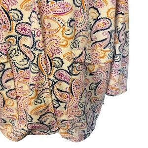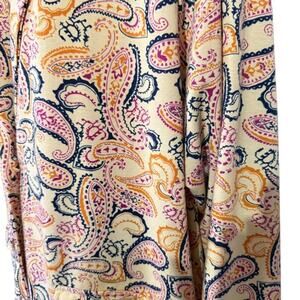 This Cuddl Duds blazer is a stylish and versatile addition to any wardrobe. Made from soft knit polyester fabric, this mid-length blazer features a paisley pattern and long sleeves with button closure. The jacket is designed with a regular fit and comes in a size 2X, suitable for plus-size women. It is lightweight and perfect for all seasons, with pockets for added convenience. This multicolor blazer is ideal for travel or casual wear, adding a touch of comfort and style to any outfit.