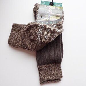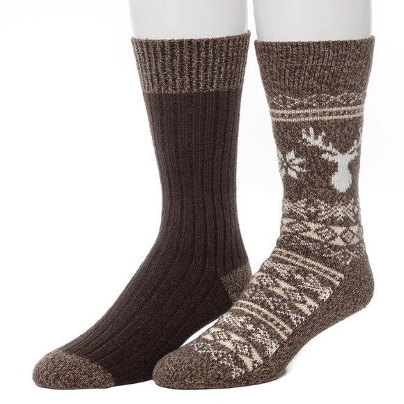 Cuddl Duds Mens ClimateSmart Plushfill Crew Socks 2 Pairs Java Brown & Pattern