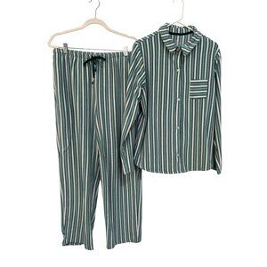 Cuddl Duds Pajama Set Size Medium Striped Button Up Long Sleeve Shirt and Pants
