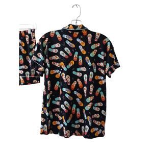 Cuddl Duds Pajama Top Shorts Set Womens Sz S Black Tropical Flip Flops Floral