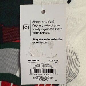 Cuddl Duds Pajamas Papa Bear Jammies Green and Black Check Size 4XB