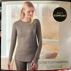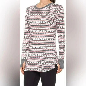 Cuddl Duds Red Gray Deer Stripe Stretch Thermal Long-Sleeve Crewneck Top XL NWT