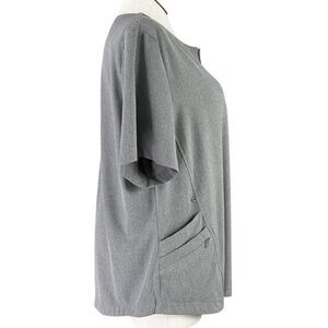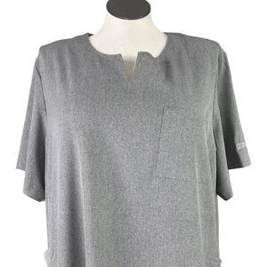 Cuddl Duds Scrub Top Women 3X Heather Gray Split Neck Short Sleeve Stretch Nurse