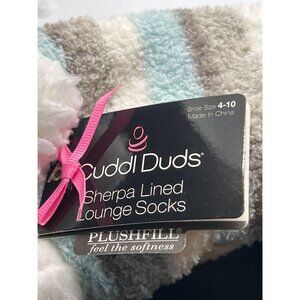 Cuddl Duds Sherpha Lined Lounge Socks Non Slip Blue Gray Shoe Size 4-10 NWT